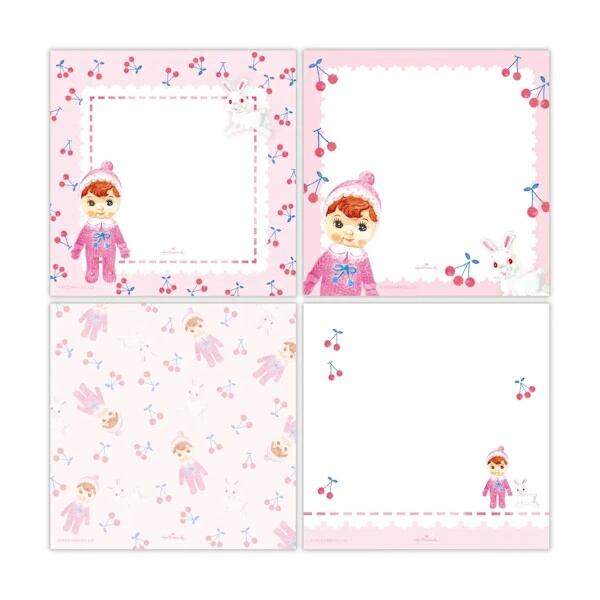 ピンクの背景とさくらんぼがラブリーなスクエアタイプのメモパッドです