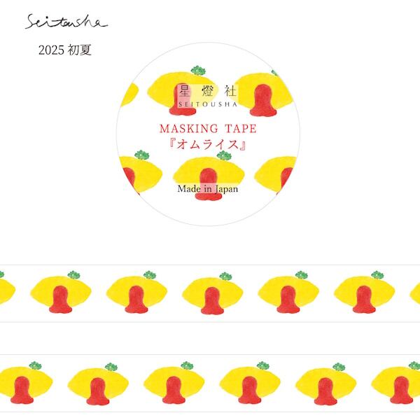2025年6月新発売、星燈社のマスキングテープ ミニカードの図案として描いたワンポイントの絵柄たちを マスキングテープにあしらいました サイズ:15mm幅×5m長