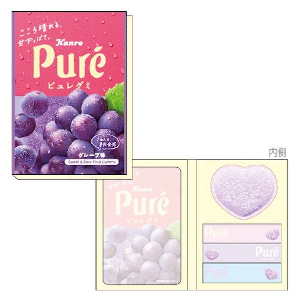 ピュレグミのパッケージデザイン1種、ハート型のグミ粒デザイン1種、長方形3種の計5種類が入っていますちょっとしたメモや伝言も、カラフルで遊び心のある付箋で仕事や勉強も楽しく