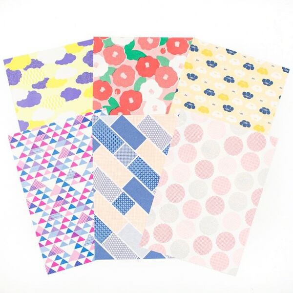 ポップなデザインと和柄が融合した絵柄のA4サイズの柄紙です