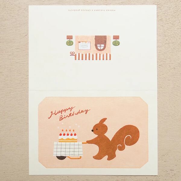 cozycaproducts バースデーカード 福岡麻利子 リスのケーキ屋さん