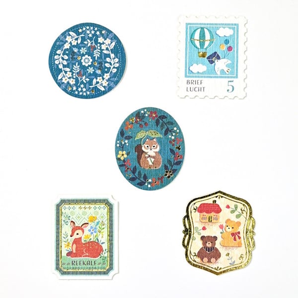 手帳やお手紙などのデコレーションに使って楽しい、風合いのある紙を使用したフレークシールです