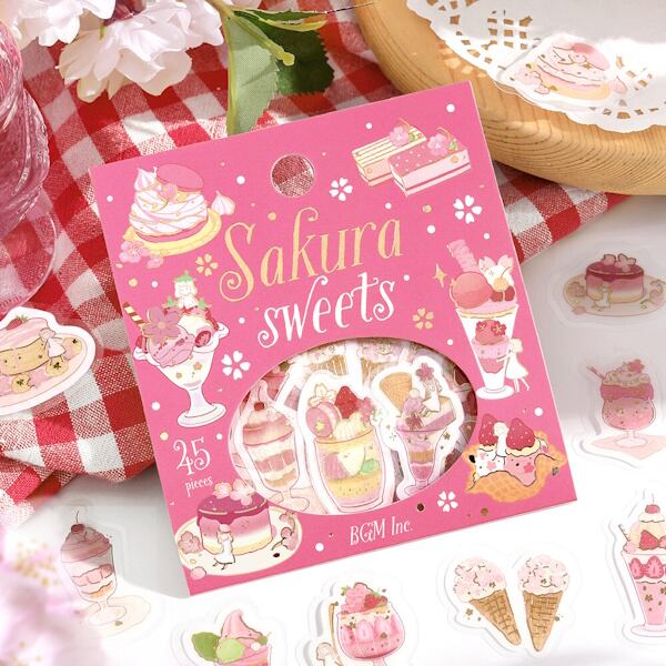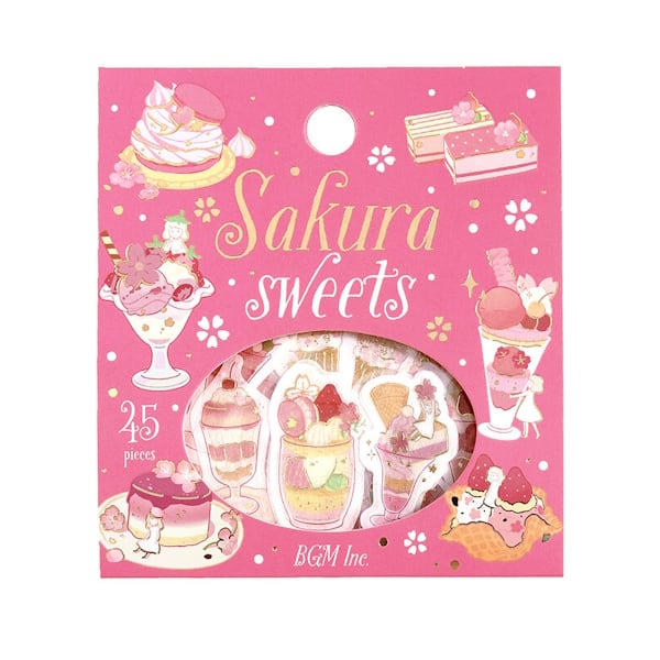 ビージーエム 箔押しフレークシール「2026桜限定」 15デザイン各3枚、合計45枚入り