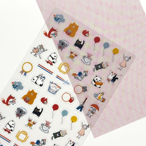 手帳やノートなどにデコレーションしやすい小さいサイズの透明素材のシールです