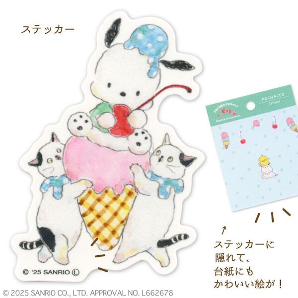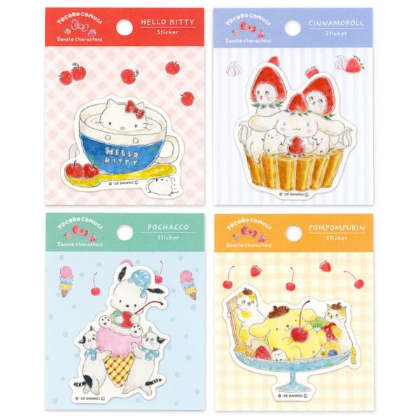 手帳やノートに貼ったり、スマホケースに挟んだり…ポチャッコやポムポムプリンと一緒にスイーツを堪能するにゃんこたちの、かわいらしい姿が日常でふと目に入ったらハッピーな気分を味わえるステッカーです