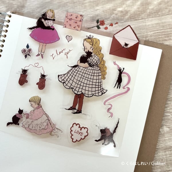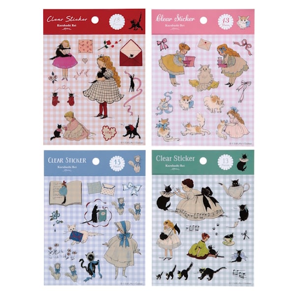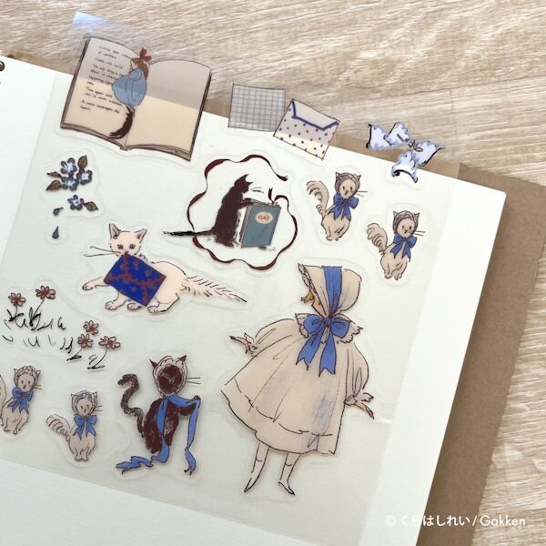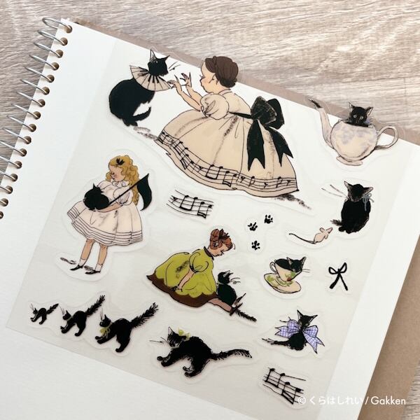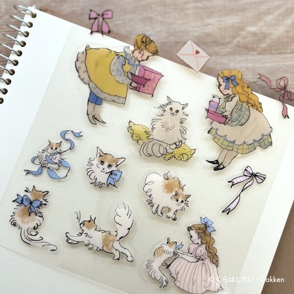 くらはしれいさんの繊細なタッチで描かれた猫や少女たちが、そっと日常に寄り添う、透明タイプのシールです