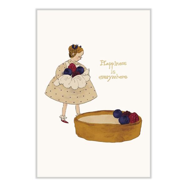 「甘いお菓子と女の子」をテーマにした、心が躍るような可愛らしいイラストのポストカードです