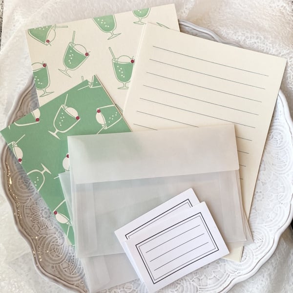 トレーシングペーパーから透ける柄がレトロかわいいと評判の良い便箋です