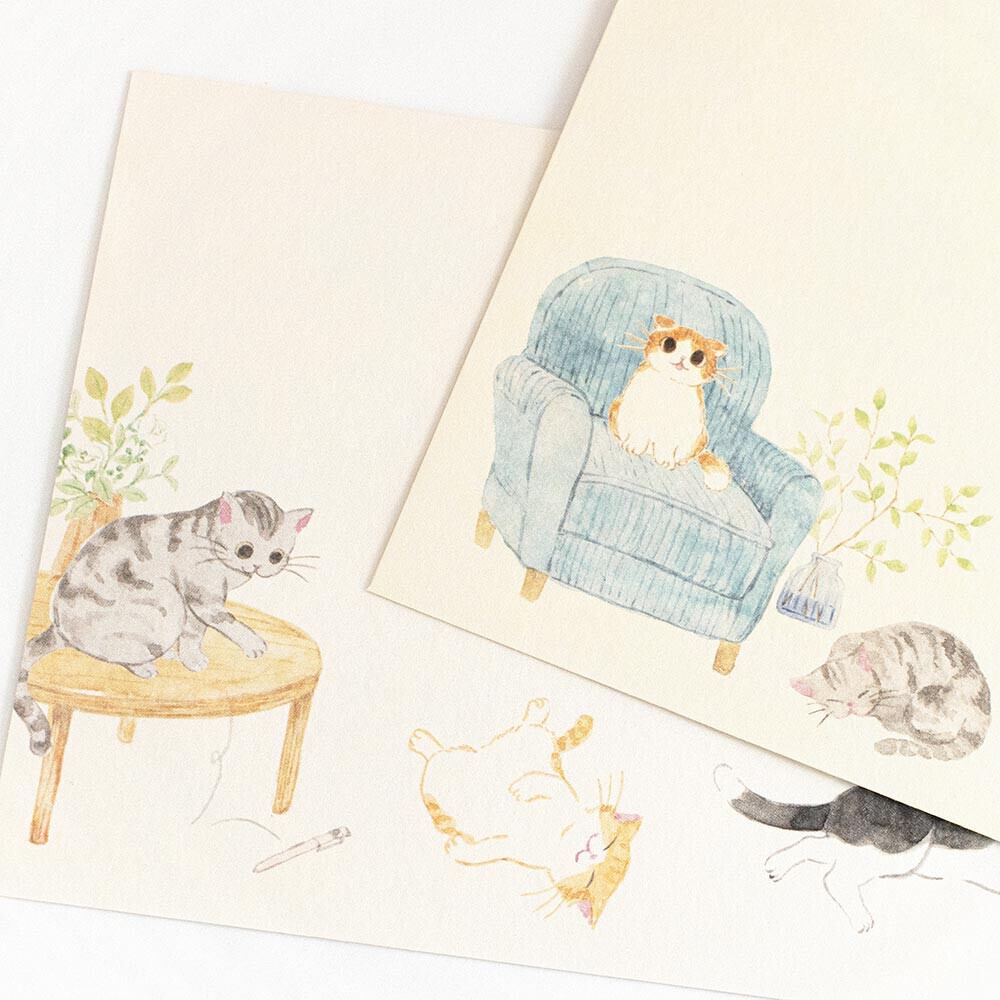ねこたちの愛らしい仕草にこだわった封筒です。 2柄アソート4枚入 奉書紙 縦110×横160mm